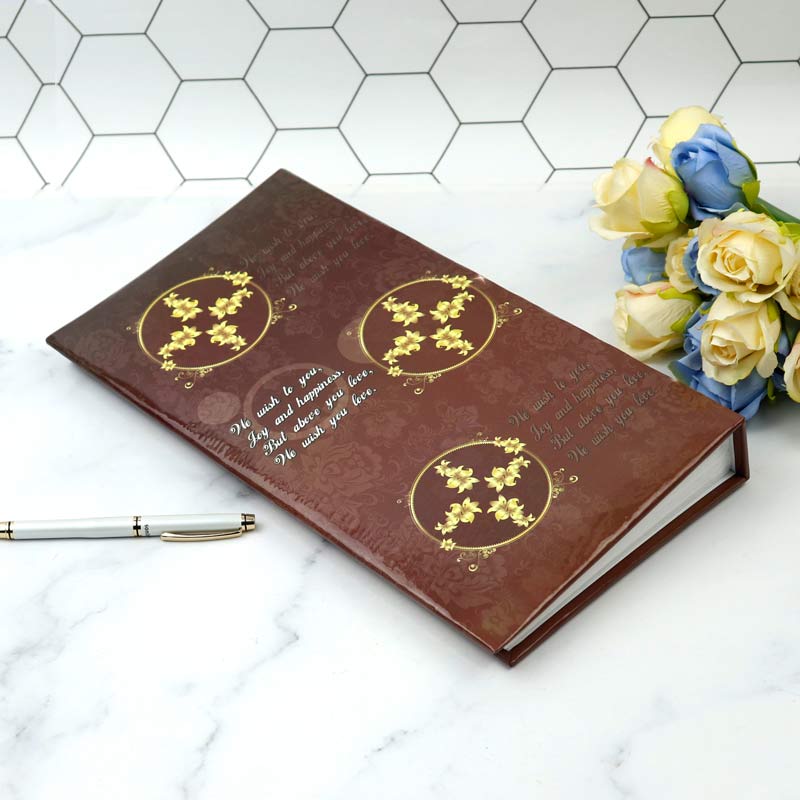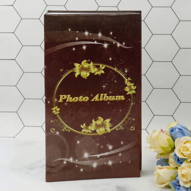 آلبوم عکس سلفونی ۲۸۸ عددی طرح گل طلایی زمینه قهوه ای ۱۵*۱۰ سانتی متر