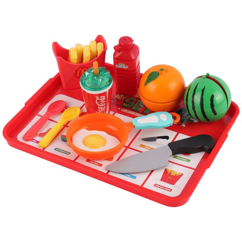 دارای قطعات بازی شامل پرتقال، هندوانه، چاقو، دو عدد قاشق، نوشابه، ماهیتابه، سیب زمینی و سس کچاپ