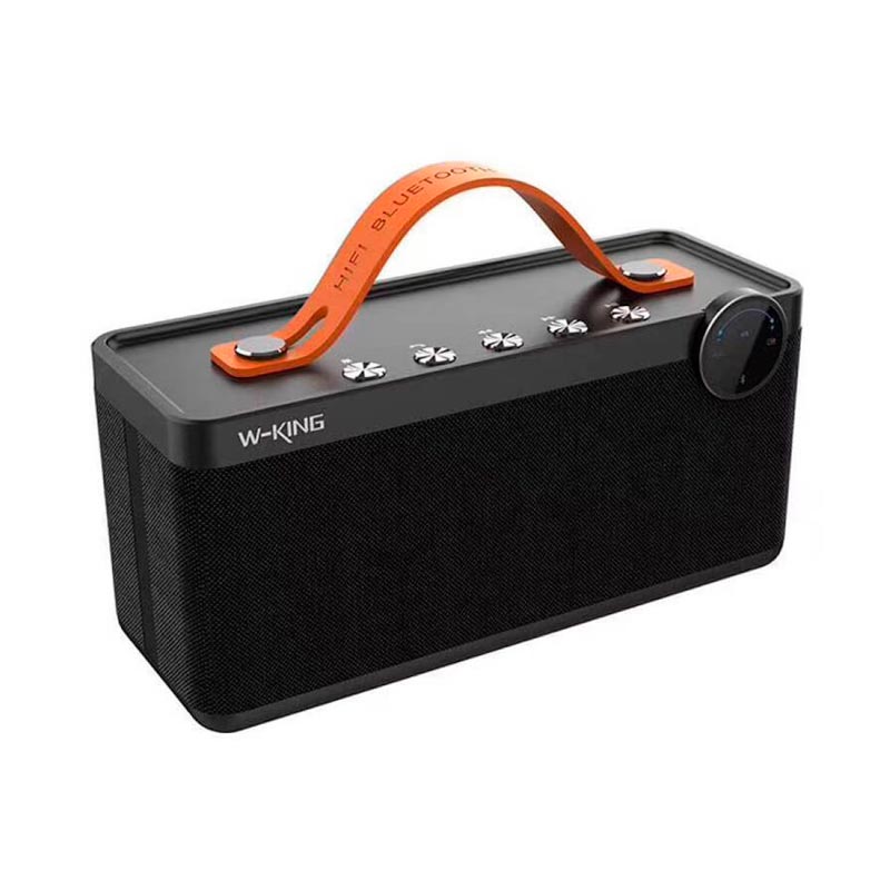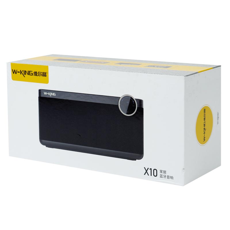 اسپیکر X10 برند W-King از طراحی شیک و سیستم بلندگوی قدرتمندی برخوردار است که می تواند در محیط های بزرگ و شلوغ حتی صدایی باکیفیت و رسا را پخش نماید. مواد به کار رفته در این اسپیکر از متریال مرغوبی نظیر پلاستیک ABS و فلز می باشد که استحکام کافی در برابر آسیب های احتمالی را خواهد داشت. این دستگاه دارای ۳ بلندگو پرقدرت در پنل جلویی می باشد که توسط الیاف پارچه ای پوشانده شده که علاوه بر زیباتر شدن این الیاف باعث می شود هنگام شنیدن آهنگ های مورد علاقه تان با حجم صدای بلند هیچ نویز و اعوجاجی به گوش نرسد و در واقع به مانند یه فیلتر تاثیر گذار نیز عمل می کند. بند چرمی باکیفیتی بر روی اسپیکر تعبیه شده تا حمل و جابجایی آن برای کاربر راحت تر باشد. X10 از طریق بلوتوث نسخه ۴٫۲ می تواند به گوشی موبایل، تبلت ها و دیگر گجت ها تا شعاع ۱۰ متری به صورت بی سیم متصل شود. علاوه بر اتصال بی سیم، توسط درگاه کارت حافظه و رابط جک صوتی ۳٫۵ میلی متری نیز امکان دسترسی به فایل های صوتی و جفت شدن با دیگر دستگاه ها برای کاربر وجود خواهد داشت.
