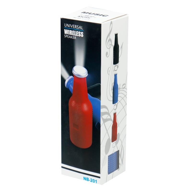 اسپیکر NB-201 دارای طراحی خاص و به شکل بطری می باشد که از متریال باکیفیتی در ساخت آن استفاده شده است و مقاومت مناسبی در برابر ضربه، فشار و دیگر آسیب های احتمالی خواهد داشت. این اسپیکر به صورت بی سیم توسط بلوتوث نسخه ۵٫۰ به گوشی های موبایل و دیگر دستگاه ها متصل می شود و تا شعاع ۱۰ متری بدون هیچ قطعی صدایی باکیفیت را پخش می نماید. همچنین شما می توانید از طریق پورت فلش مموری USB و شیار کارت حافظه MicroSD به دیگر فایل های صوتی خود در این حافظه ها دسترسی پیدا کنید. محفظه کوچکی بر روی این پخش کننده صوتی تعبیه شده تا با اتصال بند و یا آویزان کردن گیره به کوله پشتی، قادر به حمل و جابجایی راحت اسپیکر نوشابه رم و فلش خور NB 201 باشید.