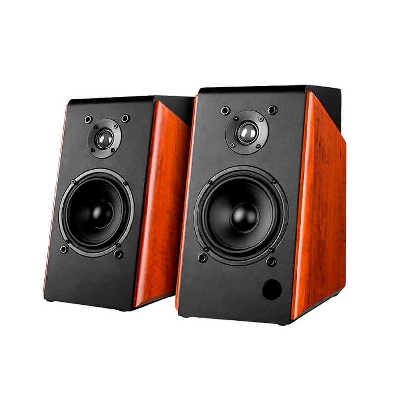 اسپیکر مدل R60BT برند F&D به صورت دو تکه طراحی شده که قادر است با بهینه سازی صدا در سطح حرفه ای، صدای بسیار رسا و شفافی را به گوش برساند. بدنه ساخته شده این اسپیکر از متریال باکیفیت و ظاهری کلاسیک برخوردار است و به لطف ابعاد مناسب و جمع و جور، فضایی زیادی از میز را اشغال نکرده و استفاده از آن در فضاهای محدود نیز امکان پذیر می باشد که از این رو از گزینه های انتخابی مناسب برای استفاده به عنوان اسپیکر دسکتاپ خواهد بود. این دستگاه پخش کننده صوتی از اتصال بی سیم پشتیبانی می کند و از طریق بلوتوث نسخه ۴٫۰ به انواع گوشی موبایل، تبلت و … متصل می شود و تا شعاع ۱۵ متری اتصالی پایدار و بدون قطعی را برقرار نگه می دارد. رابط RCA، رابط جک صوتی ۳٫۵ میلی متری (AUX) و پورت USB جهت قرار دادن فلش مموری نیز برای این اسپیکر فراهم شده تا امکان متصل کردن این دستگاه دسکتاپ به سیستم های کامپیوتری، کنسول بازی، لپ تاپ و … وجود داشته باشد.