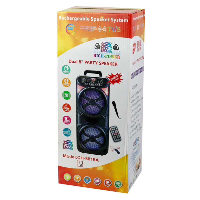 اسپیکر چمدانی بلوتوثی رم و فلش خور High Power CH-8816A + میکروفون و ریموت کنترل