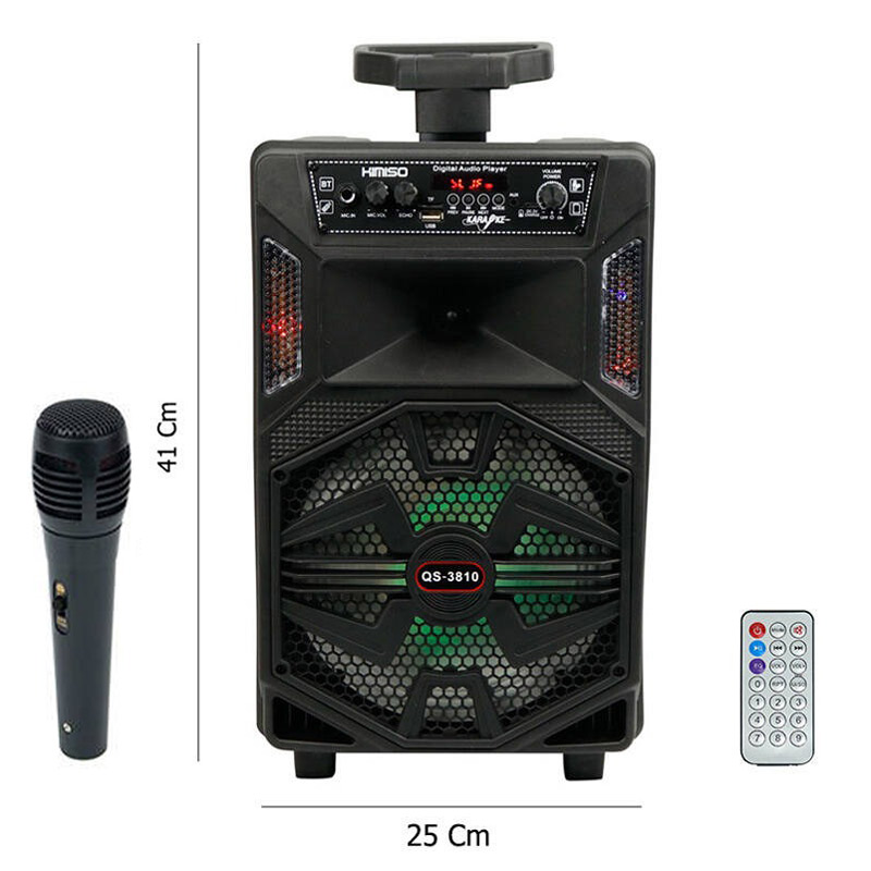 اسپیکر چمدانی بلوتوثی رم و فلش خور Kimiso QS-3810 + میکروفون و ریموت کنترل