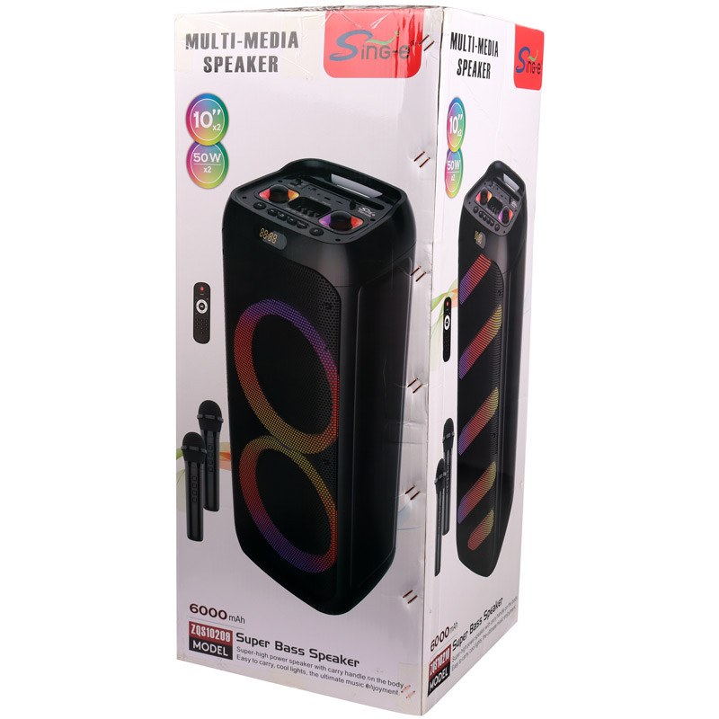اسپیکر چمدانی بلوتوثی رم و فلش خور Sing-E ZQS10209 + میکروفون و ریموت کنترل