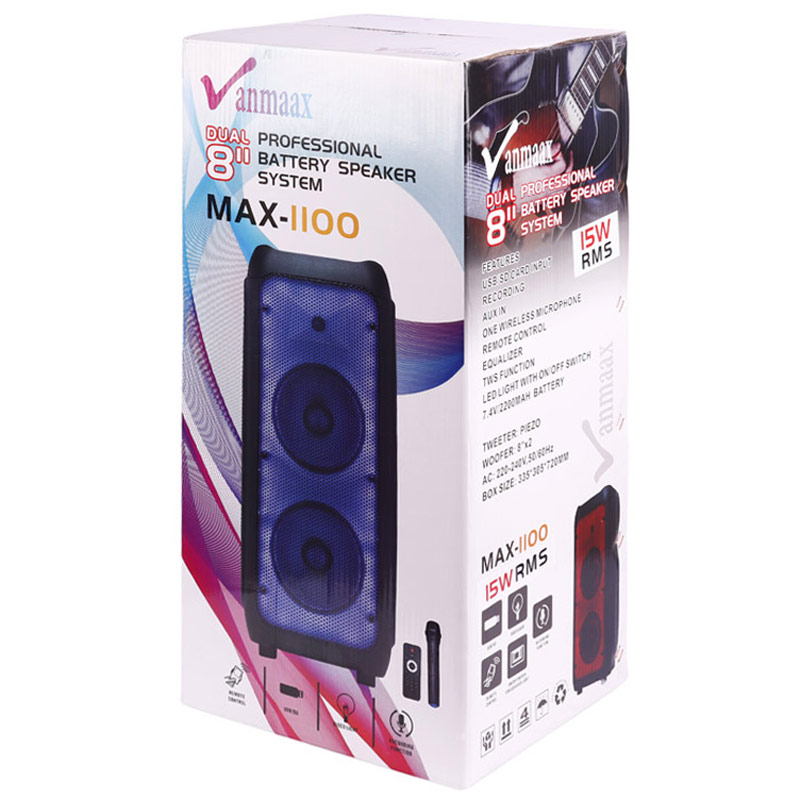 اسپیکر چمدانی بلوتوثی رم و فلش خور Vanmaax MAX-1100 + میکروفون و ریموت کنترل