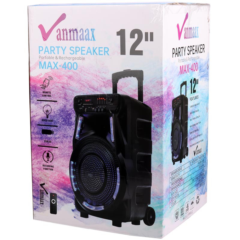 اسپیکر چمدانی بلوتوثی رم و فلش خور Vanmaax MAX-400 + میکروفون و ریموت کنترل