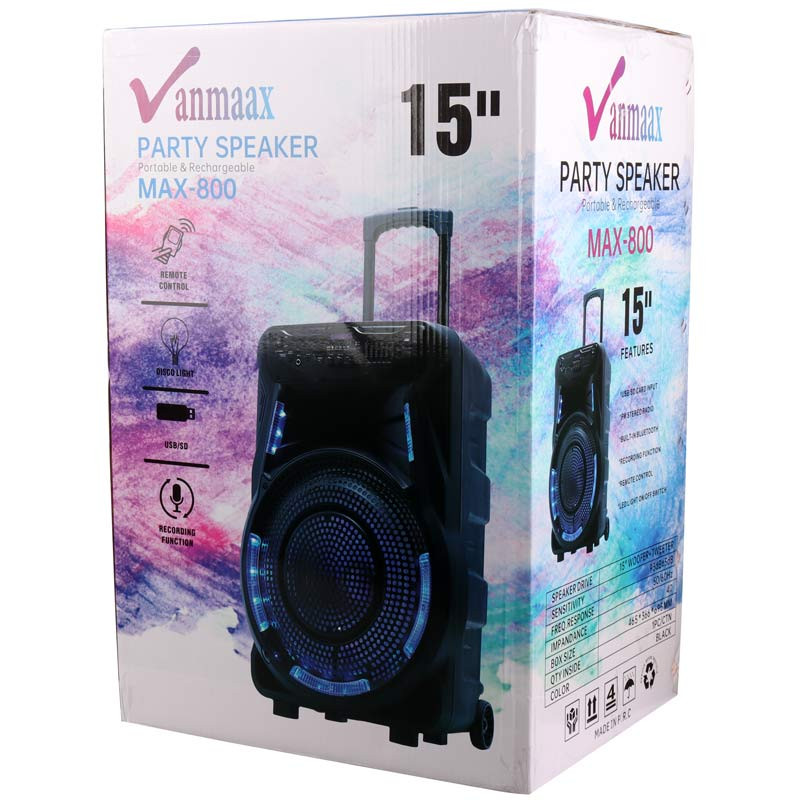 اسپیکر چمدانی بلوتوثی رم و فلش خور Vanmaax MAX-800 + میکروفون و ریموت کنترل