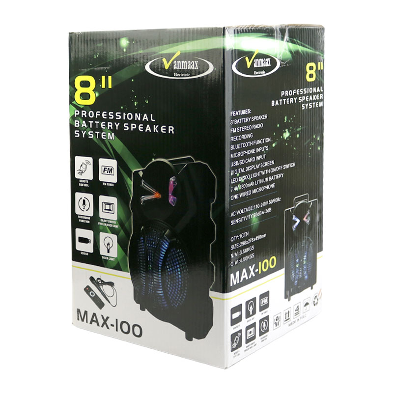 اسپیکر چمدانی بلوتوثی رم و فلش خور VanMaax MX-100 + میکروفون و ریموت کنترل