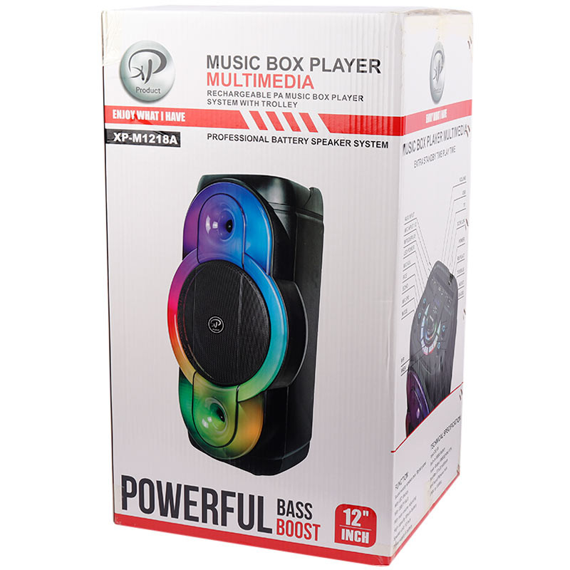 اسپیکر چمدانی بلوتوثی رم و فلش خور XP-Product XP-M1218A + میکروفون و ریموت کنترل