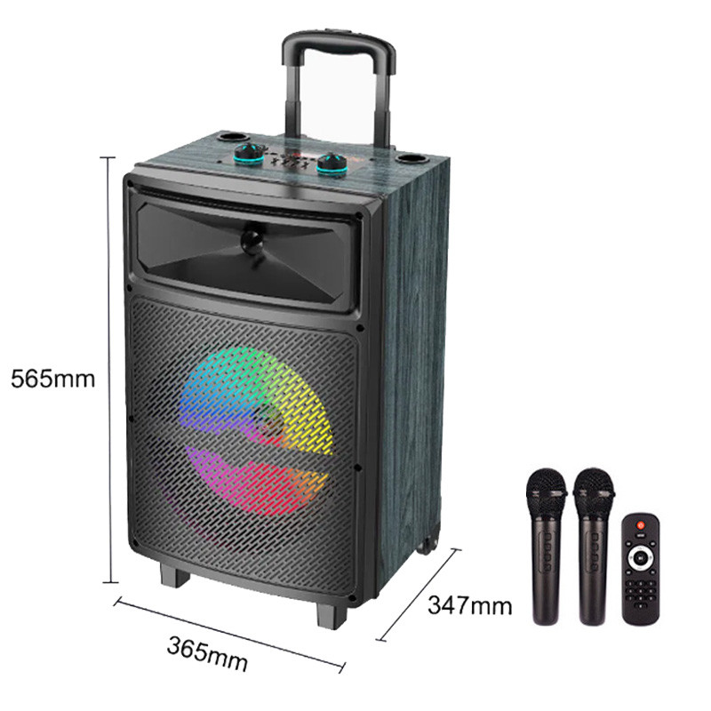 دارای دسته و چرخ تعبیه شده جهت حمل آسان، مجهز به ریموت کنترل برای کنترل از راه دور، دارای 2 عدد هولدر میکروفون