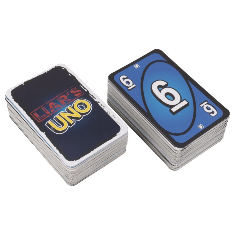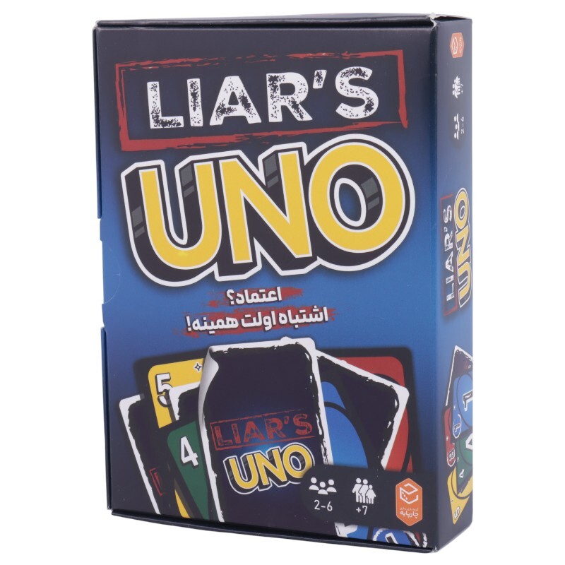 در این نسخه، بیش از نیمی از کارت‌ ها «کارت دروغ‌ گو» هستند. کارت‌ هایی که باید رو به پایین بازی کنی و وانمود کنی چه چیزی گذاشتی. آیا راست می‌ گویی یا داری بلوف می‌ زنی؟ این را فقط خودت می‌ دانی… تا وقتی که کسی تو را به چالش نکشد! با همان قواعد کلاسیک UNO، اما با چاشنی شک، استراتژی و فریب، این بازی رقابتی، خنده‌دار و پرهیجان، دوستی‌ها را به آزمون می‌ کشد. مواظب باش، چون در Liar’s UNO اعتماد اشتباه، بزرگ‌ترین باخت است!