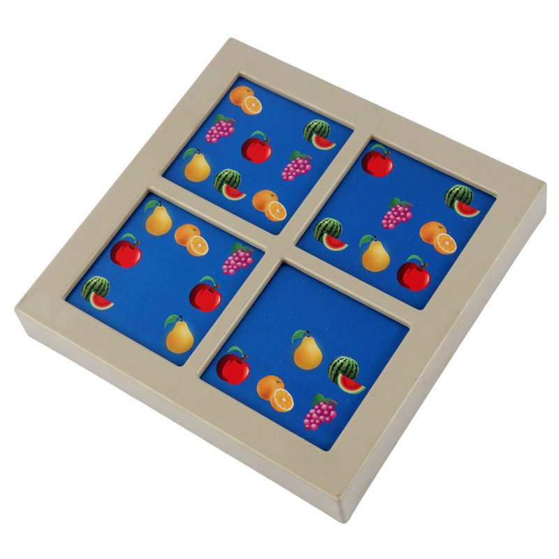 صفحه بازی از 4 بخش تشکیل شده است و در هر بخش تصویر تعدادی میوه وجود دارد.