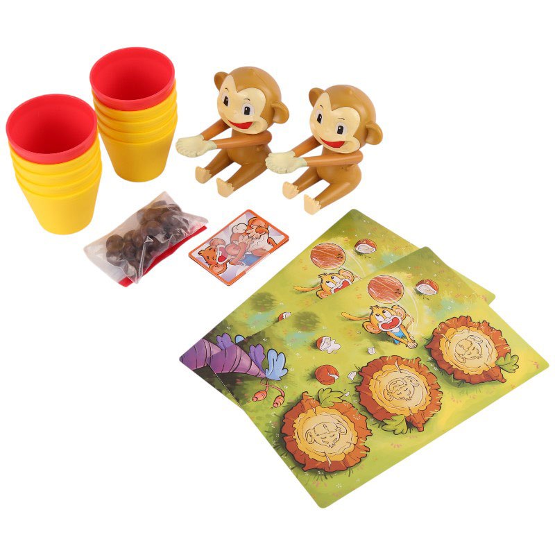 برخورداری از 2 زمین بازی، 2 میمون تیر انداز، 10 عدد لیوان، 20 عدد نارگیل، 6 کارت و دفترچه راهنما