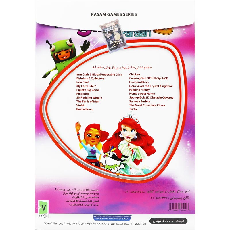 مجموعه ای از بهترین بازی های سرگرم کننده و مهیج دخترانه رده بندی سنی : ۷+ شماره مجوز : ۹۴/۵۹۳/ ن م قیمت پشت جلد : ۴۰۰۰۰ تومان