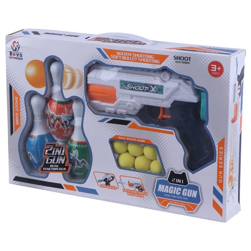 اسباب بازی تفنگ 2 کاره آبپاش و توپ بهمراه بولینگ jiayihongqi Magic Gun 648 کد 101654