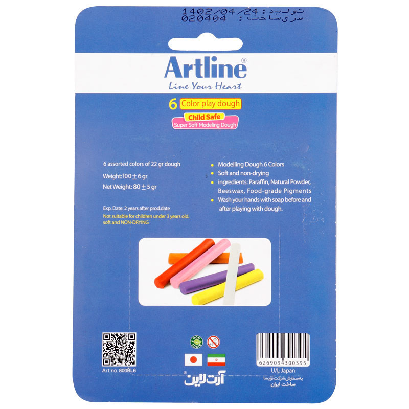 خمیر بازی 6 رنگ وکیومی آرت لاین Artline NO.800BL6