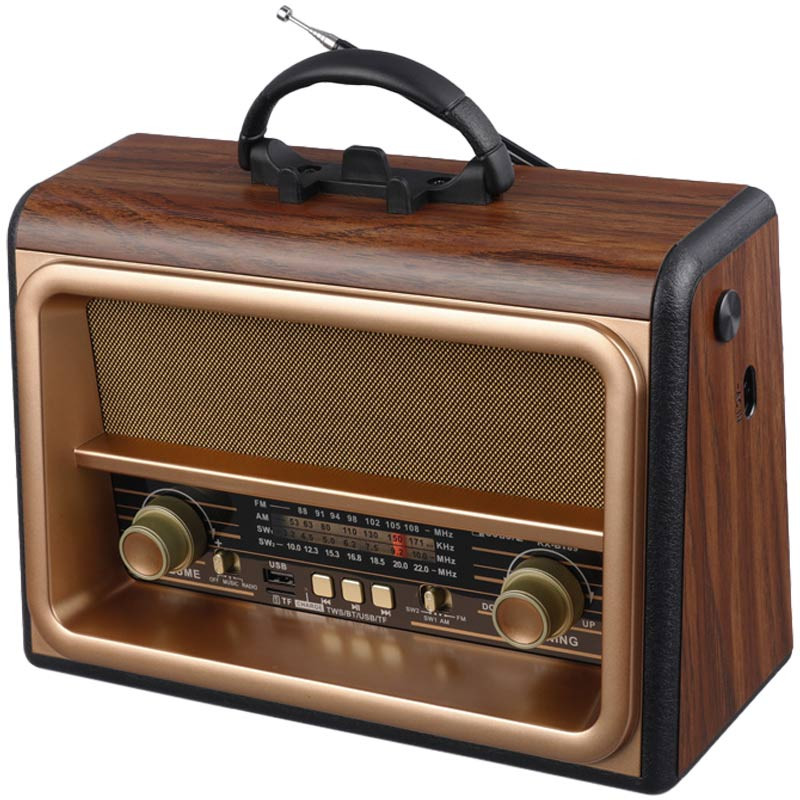 جنس بدنه از پلاستیک و چوب، دارای آنتن اکسترنال و دسته به منظور حمل