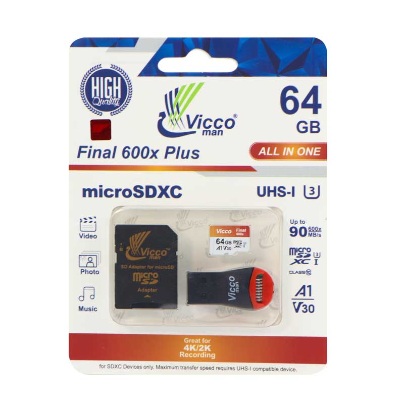 رم میکرو ۶۴ گیگ ویکومن Vicco Final All In One U3 A1 90MB/s + رم ریدر
