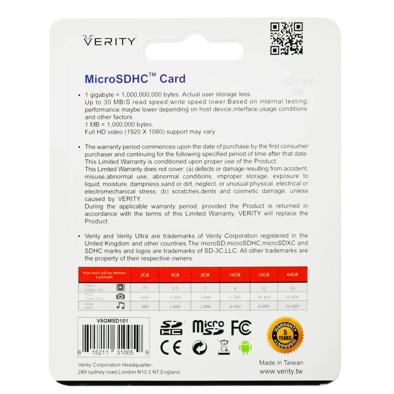 خانه کامپیوتر ذخیره سازی رم گوشی رم میکرو اس دی (Micro SD) رم میکرو 8 گیگ وریتی Verity Extreme 200X U1 C10 30MB/s