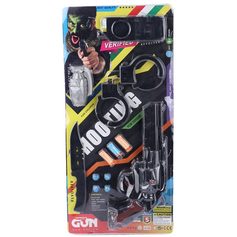 مجموعه اسباب بازی تفنگ هفت تیر Ahoo، همراه با دستبند، بیسیم، چاقو، نارنجک و فشنگ