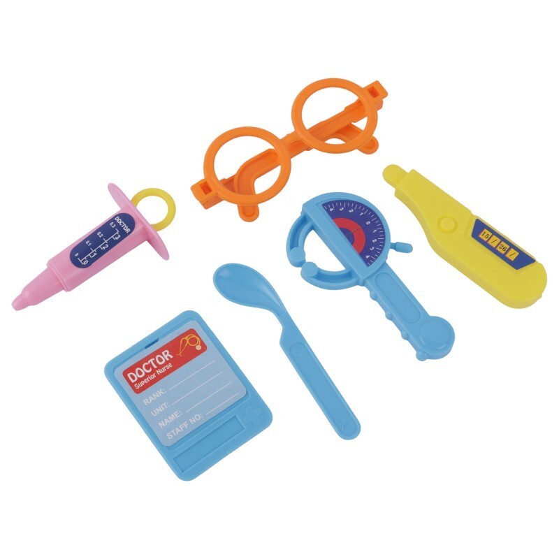 تشکیل شده از 13 تکه شامل گوشی پزشکی، عینک، دماسنج، آینه معاینه دندان بیمار، سرنگ و …