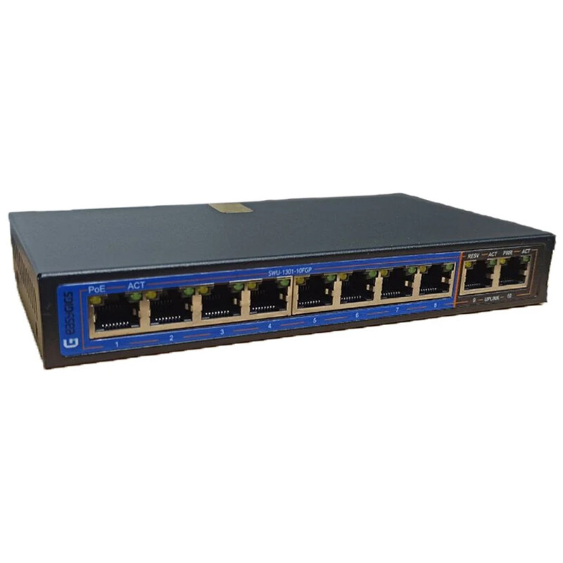 برخورار از 8 پورت گیگابیت POE با سرعت 10/100 مگابیت بر ثانیه و 2 پورت آپ لینک با سرعت 10/100/1000 مگابیت بر ثانیه