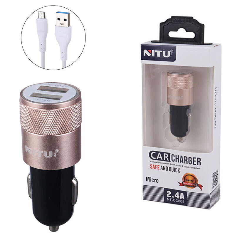 شارژر فندکی فست شارژ Nitu NT-CC805 2.4A 12W + کابل میکرو یو اس بی