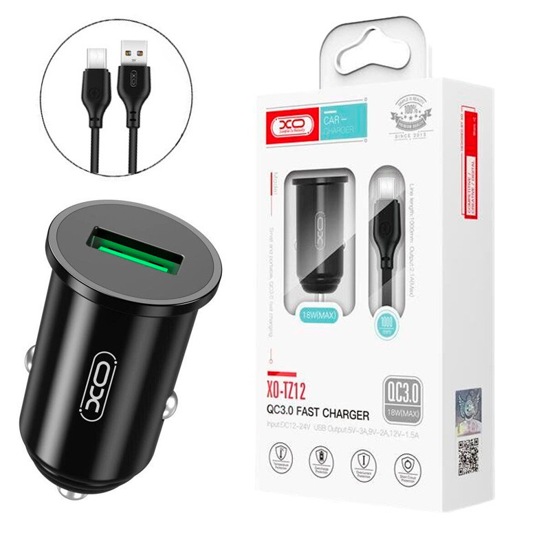 شارژر فندکی فست شارژ XO XO-TZ12 3A QC3.0 PD 18W + کابل تایپ سی