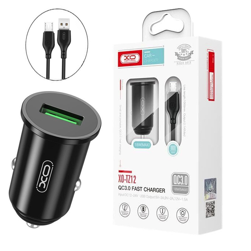 شارژر فندکی فست شارژ XO XO-TZ12 QC3.0 PD 18W + کابل میکرو یو اس بی