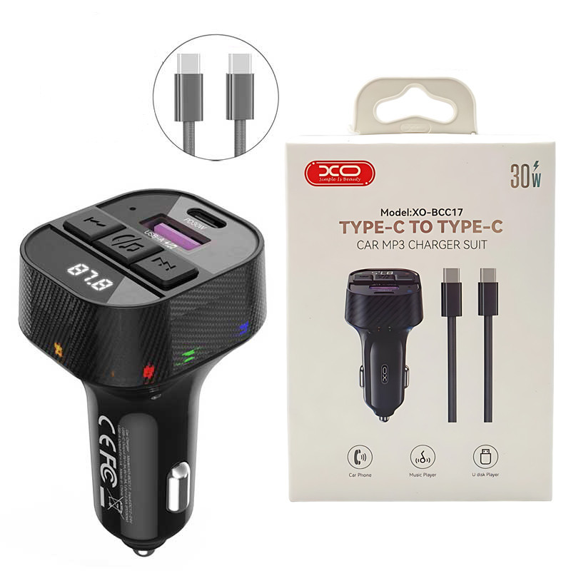 شارژر فندکی و اف ام پلیر بلوتوثی 30 وات ایکس او XO-BCC17 + کابل تبدیل تایپ سی