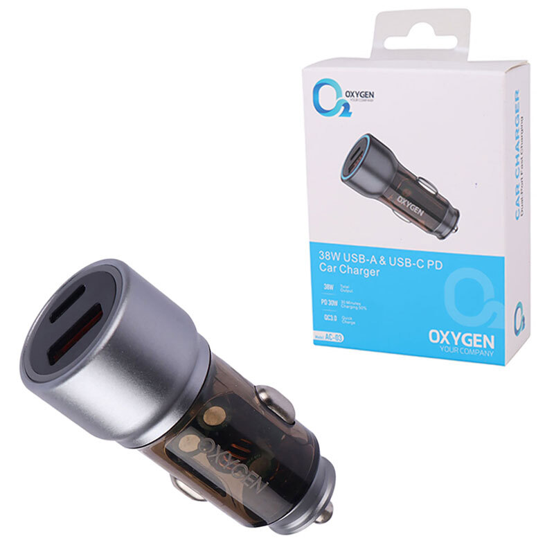شارژر فندکی فست شارژ خودرو Oxygen مدل AC-03 با حداکثر توان خروجی 20 وات
