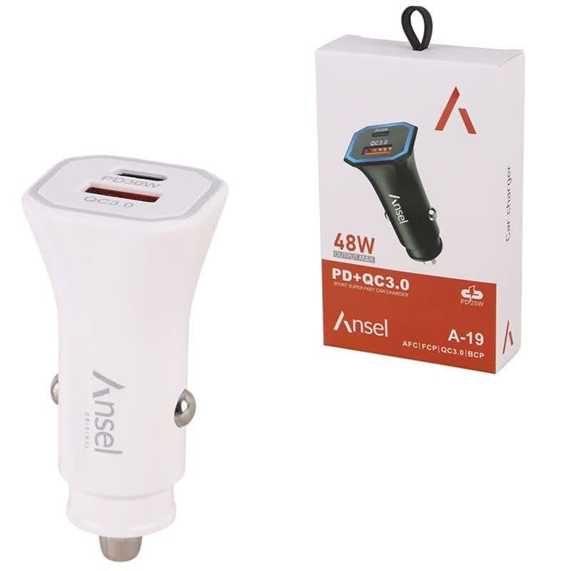 شارژر فندکی فست شارژ خودرو Ansel مدل A-19 با حداکثر توان خروجی 30 وات
