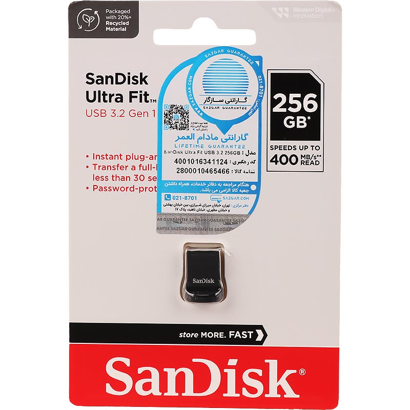 فلش مموری USB 3.2 سن دیسک مدل Ultra Fit با ظرفیت 256 گیگابایت