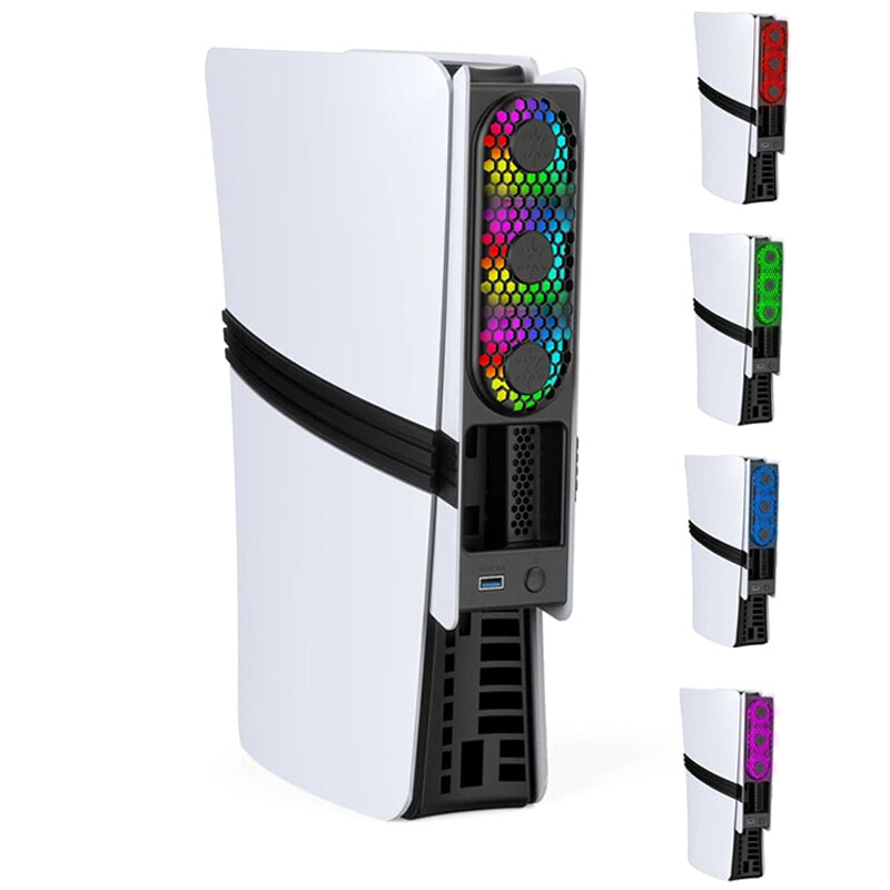 مجهز به سه عدد فن با عملکرد بی صدا و دارای نورپردازی RGB، مناسب برای کنسول بازی PS5 Slim و PS5 Pro