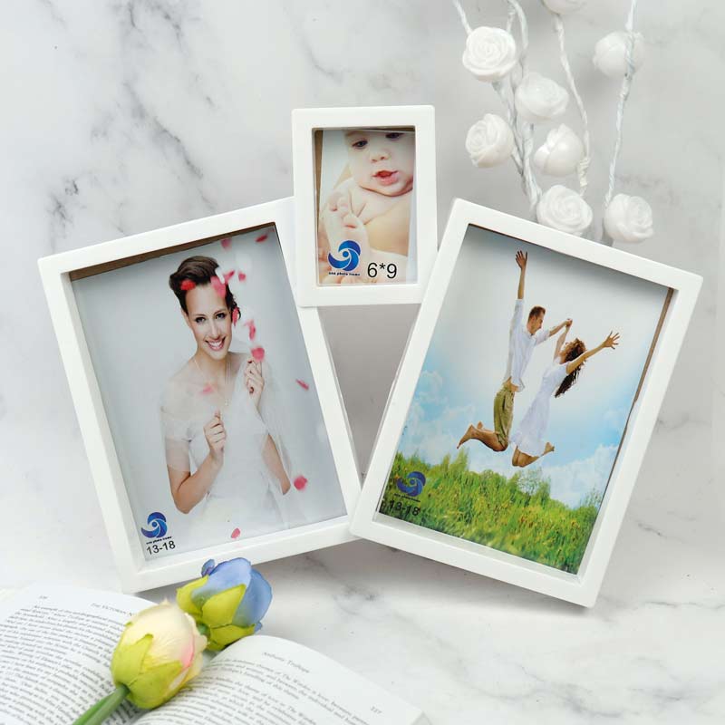قاب عکس خانواده مستطیلی ۳ تایی رنگ سفید با سایز های ۱۸*۱۳ و ۶*۹ سانتی متر