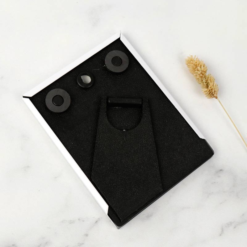 قاب مستطیلی، دارای پایه برای قرار گرفتن روی میز و آهنربا جهت اتصال به سطوح فلزی