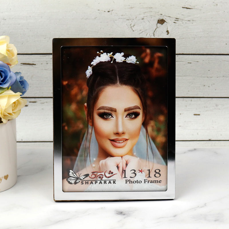 قاب عکس ساده دور نقره ای مناسب برای عکس با سایز ۱۳*۱۸ سانتی متر
