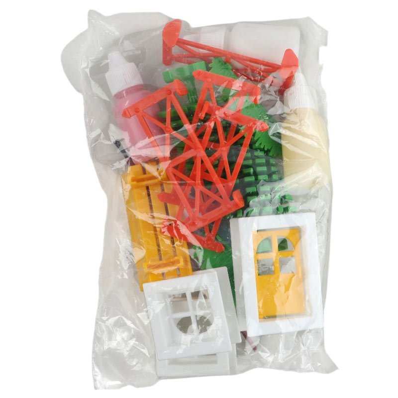 معمار کوچولو پیشرفته حاوی 300قطعه آجر مستطیلی در ۴ سایز مختلف -12 قطعه آجر مکعبی -4 قطعه آجر مثلثی-2 قطعه آجر بام شیروانی – 1 عدد کمچه -1عدد صفحه زیر کار – 2عدد پایه سازه چوبی با ابعاد 10×10 سانتی متر – 12عدد تایل سقف در سه سایز مختلف – 1عدد درب – 2عدد پنجره – 2عدد سبزه – 4عدد نرده – 2عدد درخت – 1عدد قلم مو – 4عدد رنگ -1عدد ظرف ساخت ملات – 3بسته پودر ملات – کمچه و استانبولی و دفترچه راهنما میباشد.