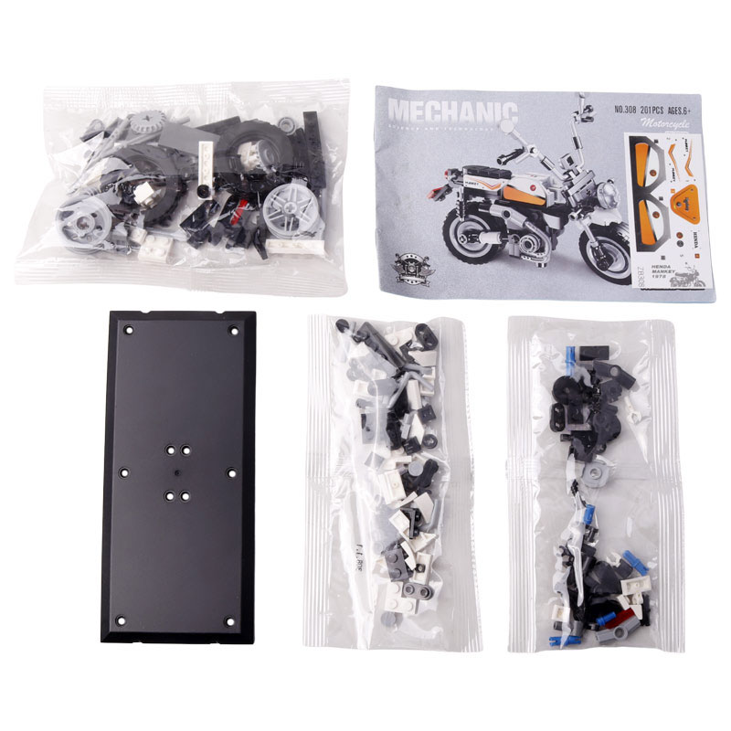 مناسب برای گروه سنی ۶+، تعداد ۲۰۱ قطعه پلاستیکی برای ساخت موتورسیکلت، وجود استند برای نگهداری فیکس سازه