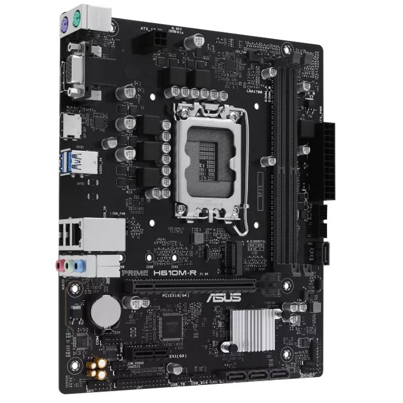 اتصالات این محصول به همین جا ختم نمی شود، مادربرد ایسوس Prime H610M-R مجهز به درگاه های مختلف از جمله درگاه Display و HDMI، دو عدد USB 2.0 و دو عدد USB 3.2 ، 3 عدد جک 3.5 میلی متری صدا و یک عددVGA می باشد. پشتیبانی از اتصال هدر های مختلفی چون Clear CMOS، هدر صدا برای پنل جلو و هدر SPI TPM دیگر امکانات مادربرد ایسوس prime h610m-r است.