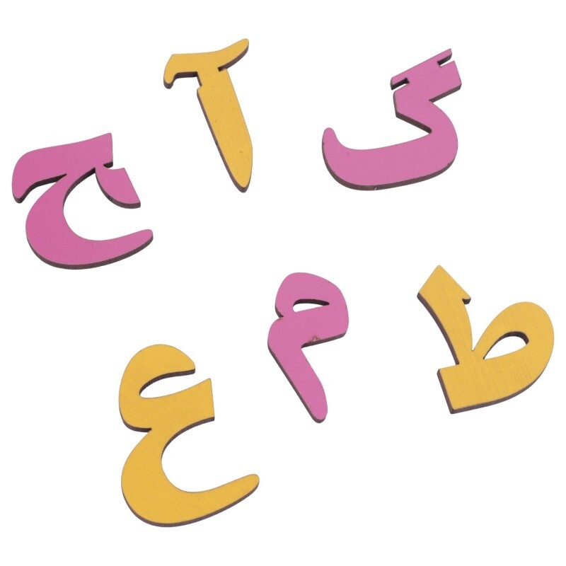 تعداد در بسته برابر با 300 عدد، ساخته شده از جنس چوب باکیفیت، دارای نوار مغناطیسی جهت چسباندن حروف و اعداد بر روی سطوح فلزی