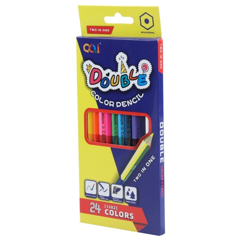 خانه لوازم تحریر و اداری ابزار نقاشی مداد رنگی 24 رنگ دو سر QQi QL/C1045