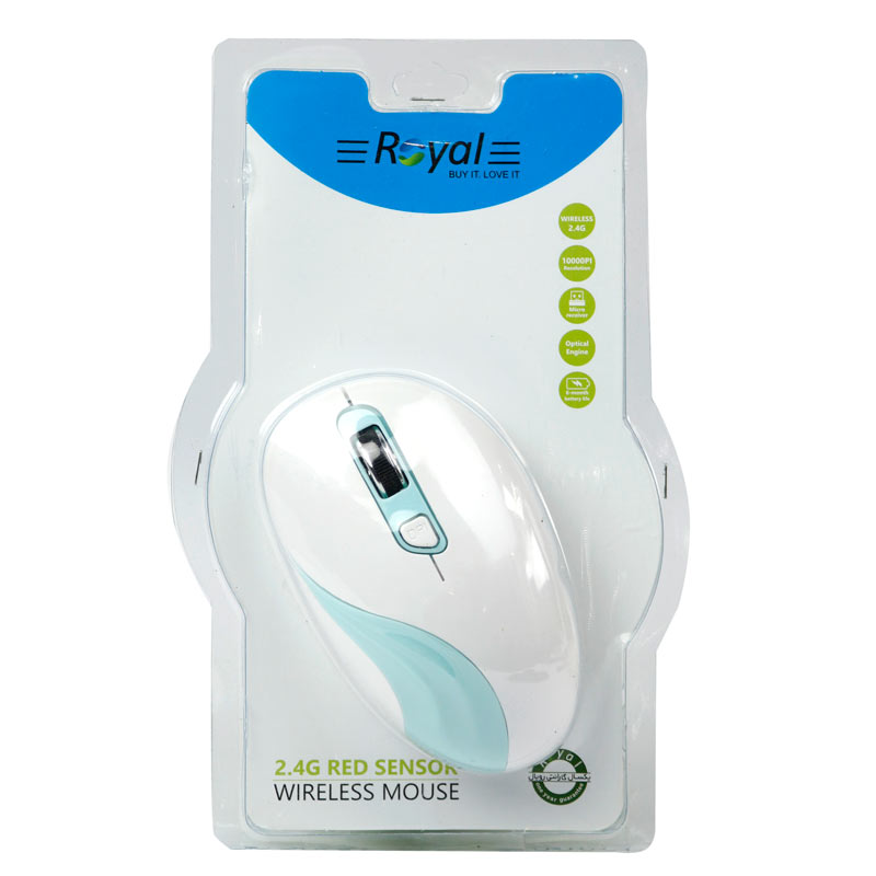 نام شرکت رویال در تولید لوازم جانبی رایانه خیلی آشنا نیست اما این شرکت توانسته با معرفی محصولات با کیفیت و قیمت مقرون به صرفه توجه بسیاری از کاربران دنیای تکنولوژی را به خود جلب کند. یکی از محصولات شرکت رویال موس بی سیم مدل MW-209 می باشد که در این جا به بررسی مشخصات این موس می پردازیم. طراحی MW-209 توسط شرکت رویال به زیبایی صورت گرفته و می تواند نظر هر کاربری را به خود جلب کند. شرکت رویال در طراحی این موس ارگونومی خاصی را در نظر گرفته که موجب می شود علاوه بر زیبایی این محصول، کاربران در استفاده طولانی مدت از موس MW-209 دچار خستگی نشوند. حسگر اپتیکال استفاده شده در موس بی سیم شرکت رویال دقتی تا حداکثر ۱۰۰۰ DPI را به شما ارائه می کند تا مشکلی در استفاده های روزمره این موس نداشته باشید. اتصال حسگر موس MW-209 شرکت رویال به رایانه توسط دانگل USB صورت می گیرد همچنین این موس به خوبی از اکثر سیستم عامل های موجود پشتیبانی می کند تا شما مشکلی در اتصال آن به رایانه خود نداشته باشید. شرکت رویال برای تامین منابع برق مورد نیاز موس MW-209 از دو عدد باتری نیم قلمی بهره گرفته که به راحتی توسط کاربر قابل تعویض می باشند.