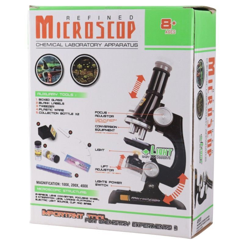 دارای چراغ برای دید بهتر، سه لنز متفاوت جهت دیدن و 4 لام جهت قرار دادن اشیا مورد نظر بر روی آن ها