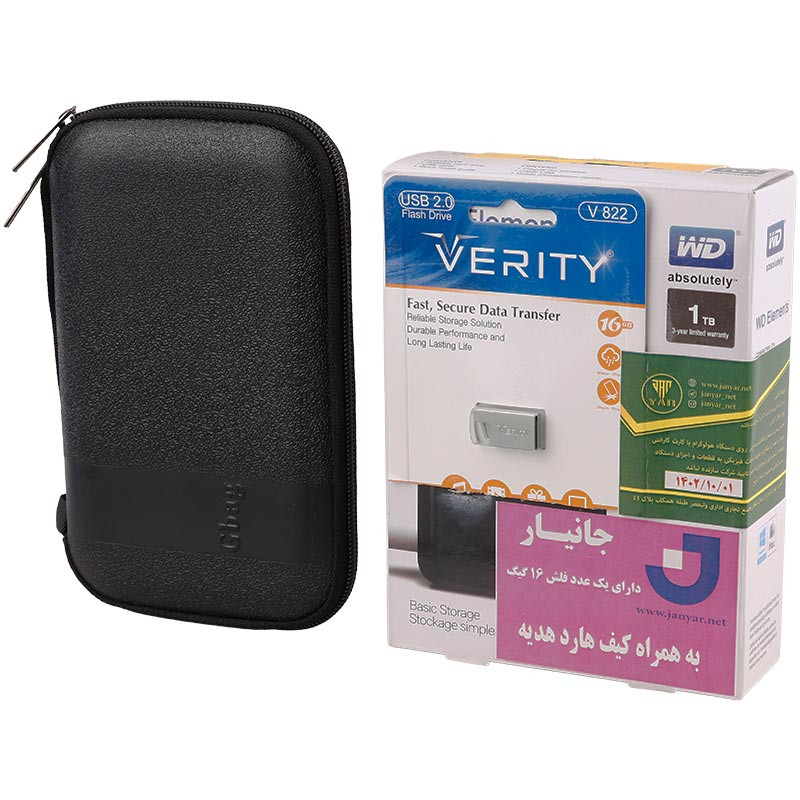 حافظه خارجی وسترن دیجیتال مدل Elements با ظرفیت 1 ترابایت به همراه فلش Verity 16GB و کیف هارد هدیه