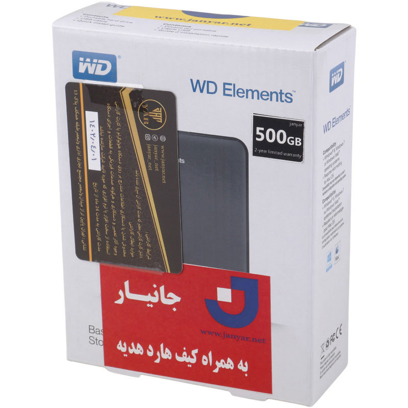 حافظه خارجی وسترن دیجیتال مدل Elements با ظرفیت 500 گیگابایت به همراه کیف هارد هدیه
