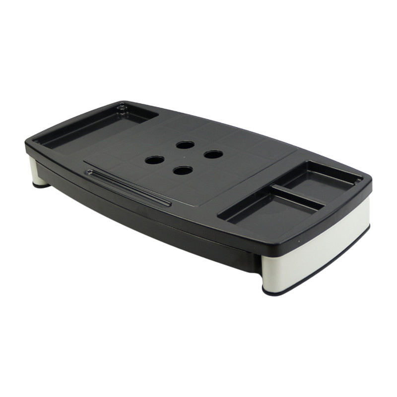 ساخته شده از پلاستیک با کیفیت، دارای یک عدد کشو به منظور نگهداری کاغذمجهز به چهار بخش مجزا جهت نظم بخشی به خودکار، مداد، گوشی موبایل، دفترچه و …به همراه ۲ جفت پایه یدک هر کدام به ارتفاع ۲ سانتی متر جهت تنظیم ارتفاع دلخواهدارای نوار لاستیکی قابل نصب در قسمت پایینی پایه ها جهت عدم ایجاد خش روی سطوح