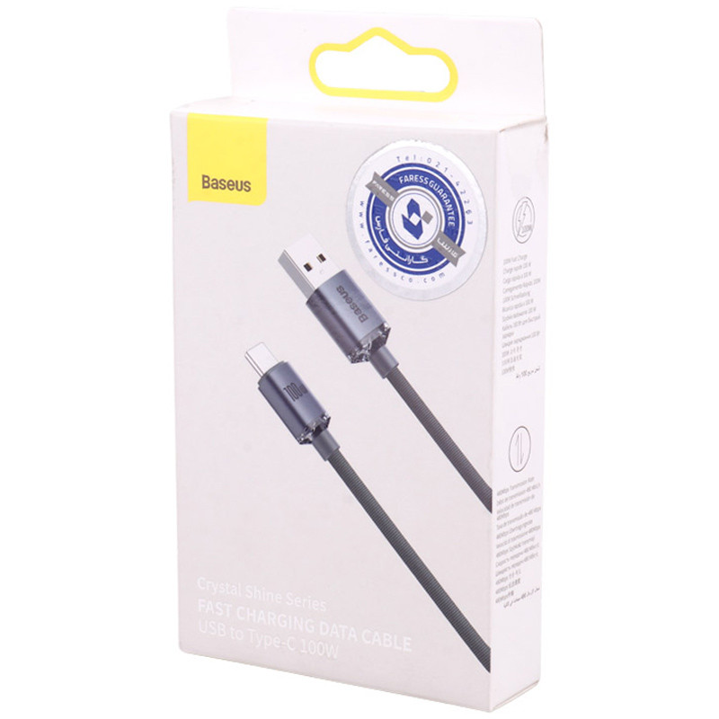 کابل تایپ سی فست شارژ 100 وات باسئوس Crystal Shine Series CAJY00040 طول 1.2 متر
