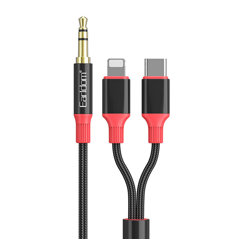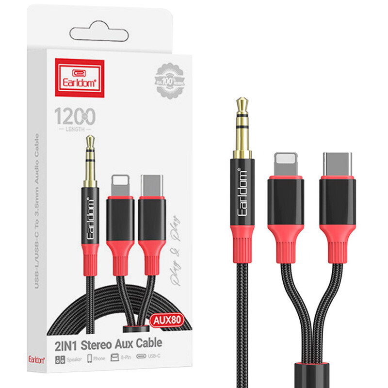 کابل تبدیل AUX به Type-C/Lightning ارلدام ET-AUX80 طول 1.2 متر