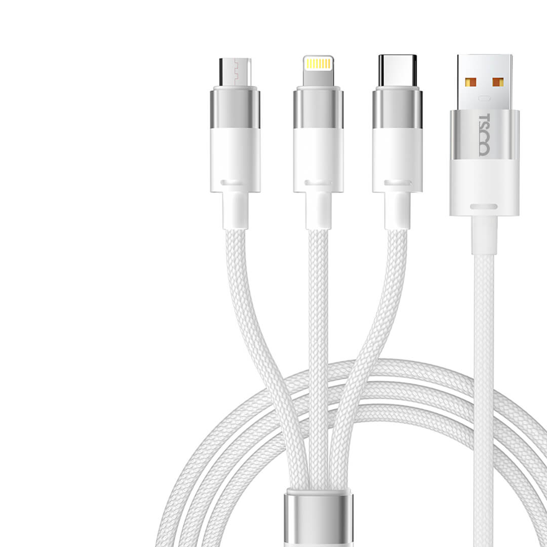 کابل شارژ تسکو مدل TCT 111 با سه نوع کانکتور USB-A به USB-C، USB-A به Lightning و USB-A به Micro طراحی شده است تا همه دستگاههای شما را تنها با یک کابل پوشش دهد.